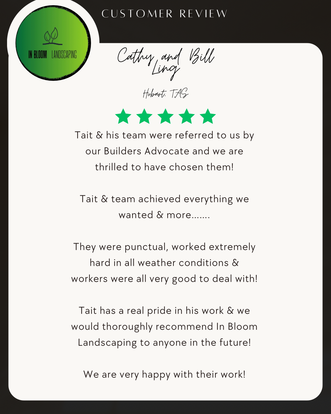 At In Bloom Landscaping Tasmania, we’ll work with you to bring your outdoor living dreams to life. Whether you want to create a completely transformed outdoor living area to adding some extra touches to an existing space, such as a privacy screen, elegant stainless steel edging, your very own putting green or a fire pit area, contact us to talk about how we can help you.